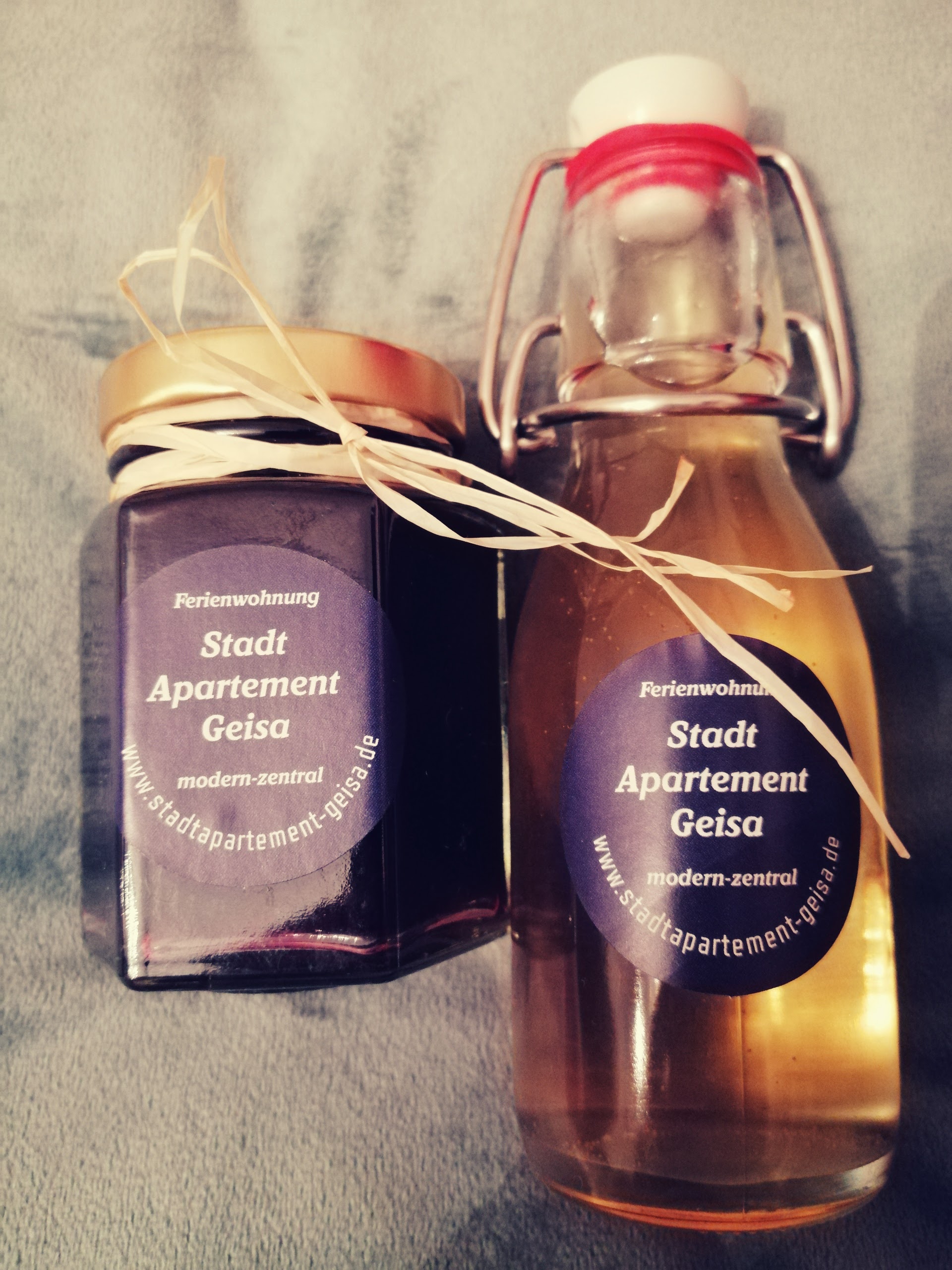 Gäste, die einen längeren Aufenthalt bei uns geplant haben, bekommen als kleines Gastgeschenk, frisch zubereitete Hausmacher Marmeladen, Honig oder Sirup. Die Rhön hat nicht nur traumhafte Natur zu bieten, auch die Früchte die wir von ihr bekommen, sind traumhaft. In der Erntezeit machen wir uns auf den Weg, sammeln Früchte, kochen ein und verschenken die Ergebnisse dann. Mit Honig werden wir von einem regionalen Imker versorgt. Da sind die Minigläser schnell aufgeschleckt und ein großes Glas kann dann direkt erworben und mit nach Hause mitgenommen werden. So schmeckt man zu Hause auch noch den Urlaub und die Rhön.